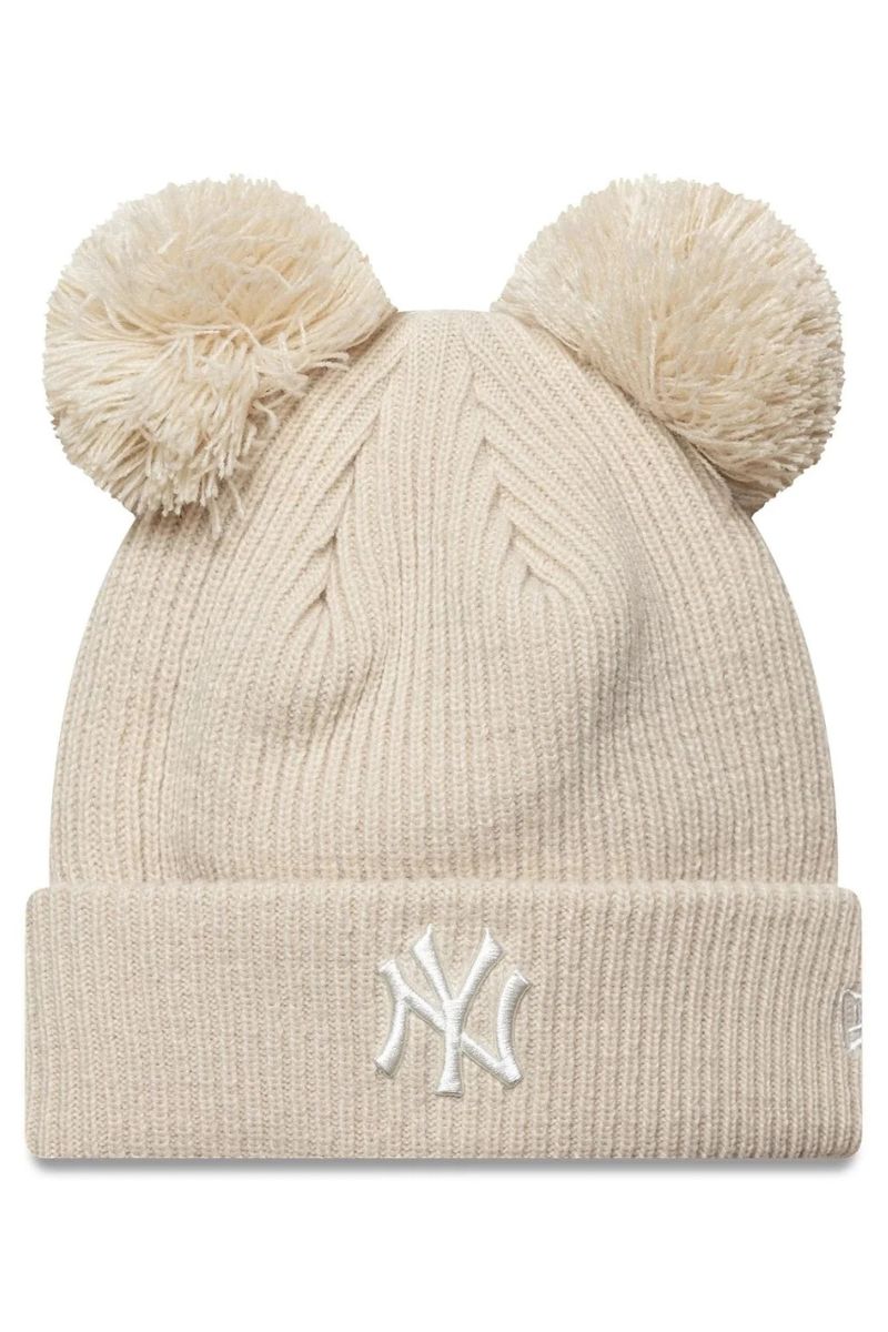 NEW ERA czapka zimova Knit Double Pom beige